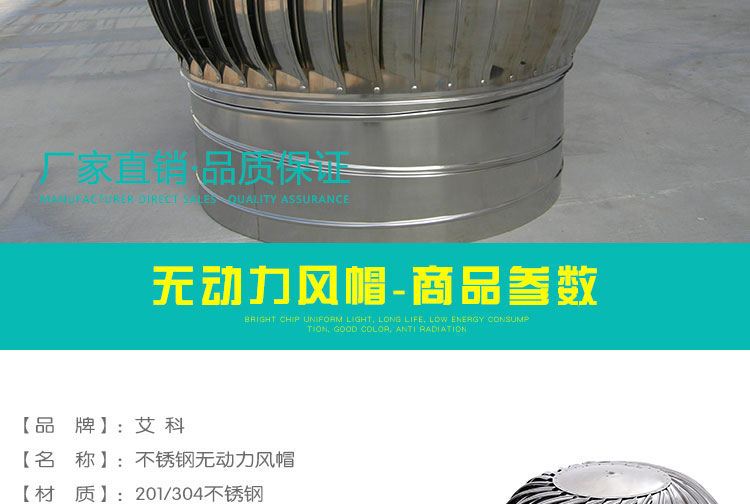 您正在浏览的是:德州澳尔斯空调设备有限公司生产的304不锈钢无动力风帽,澳尔斯空调为您提供轴流风机、排烟风机、防火阀、风机盘管、新风净化机组等等的选购和解决方案;如果您对消防通风防排烟设备厂家、设备报价资料感兴趣,可以立即拨打电话和我们联系!您可以致电全国统一服务热线:15315870122、邮箱:dzaoersi@dzaoersi.com,进行产品咨询或来访预约,我们将竭诚为您服务!